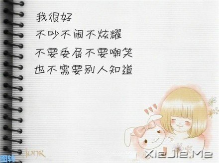 我很好,不吵不闹不炫耀,不要委屈不要嘲笑,也不需要别人知道。